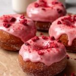 - Glaze and Garnish: Spoon strawberry glaze over the top of each donut. Garnish with extra freeze-dried strawberries and enjoy immediately.