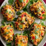 Delicious and flavorful stuffed poblano peppers filled with a savory mixture of ground turkey, corn, black beans, rice, and a blend of Mexican cheeses, baked to perfection for a satisfying and healthy meal.