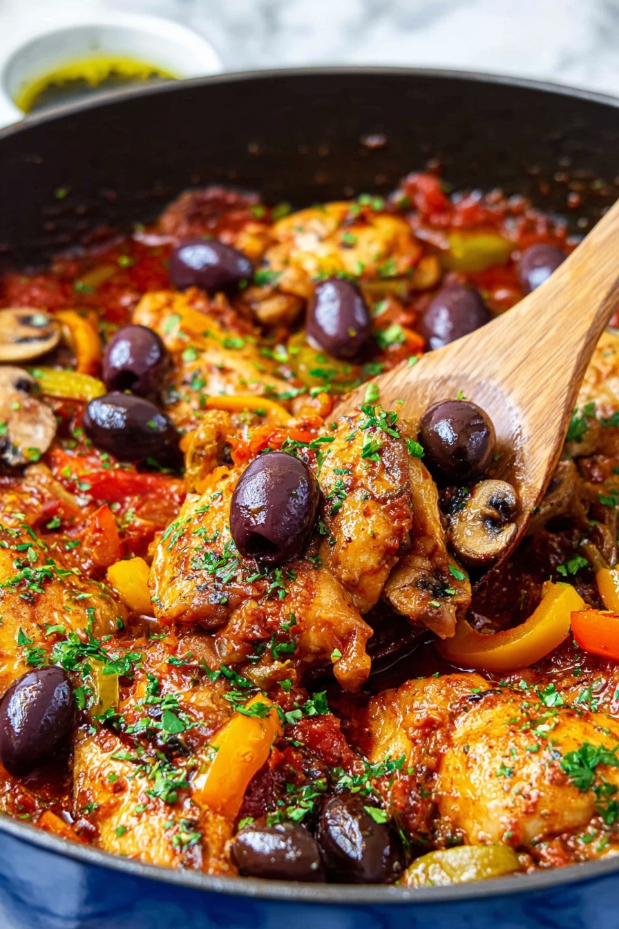 For this recipe, I like to use bone-in, skin-on chicken pieces because they stay juicy and soak up all that wonderful sauce. When shopping, look for fresh, firm mushrooms and a variety of colorful bell peppers to brighten the dish. And don't skimp on the Kalamata olives—they bring a delightful briny kick at the end.