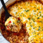 This easy and flavorful Unstuffed Peppers recipe combines ground beef, sausage, rice, and melted cheese in a single skillet. Bursting with seasoned tomato sauce and topped with gooey cheddar and Monterey Jack cheese, it's a comforting and family-friendly dinner perfect for busy weeknights.