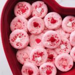 These Valentine's Day Cookie Cups are adorable bite-sized treats with a soft, chewy, buttery sugar cookie base that hides a sweet Hershey's Hug surprise inside. Perfect for gifting or celebrating the holiday of love with a fun, easy-to-make dessert that's delightful for all ages.