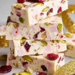 White Christmas Rocky Road is a festive and indulgent no-bake treat featuring smooth white chocolate, toasted pistachios, chewy marshmallows, glacé cherries, and desiccated coconut. This easy-to-make recipe is perfect for holiday gifting or a sweet snack, setting firm in the fridge to create deliciously rich and colorful chunks.